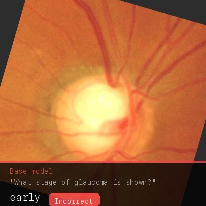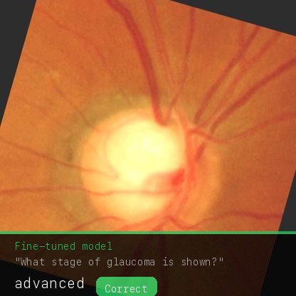 We fine-tuned Moondream to classify retinal images by glaucoma severity. The base model defaulted to "early" for nearly every image. The fine-tuned model distinguishes severity correctly, performing 2x better than GPT-5.4.